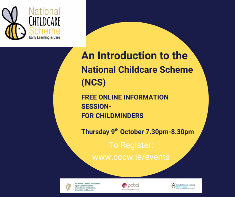An Introduction to the National Childcare Scheme (NCS) October 9, 2025 7:30 pm Free Online Information Session for Childminders More
