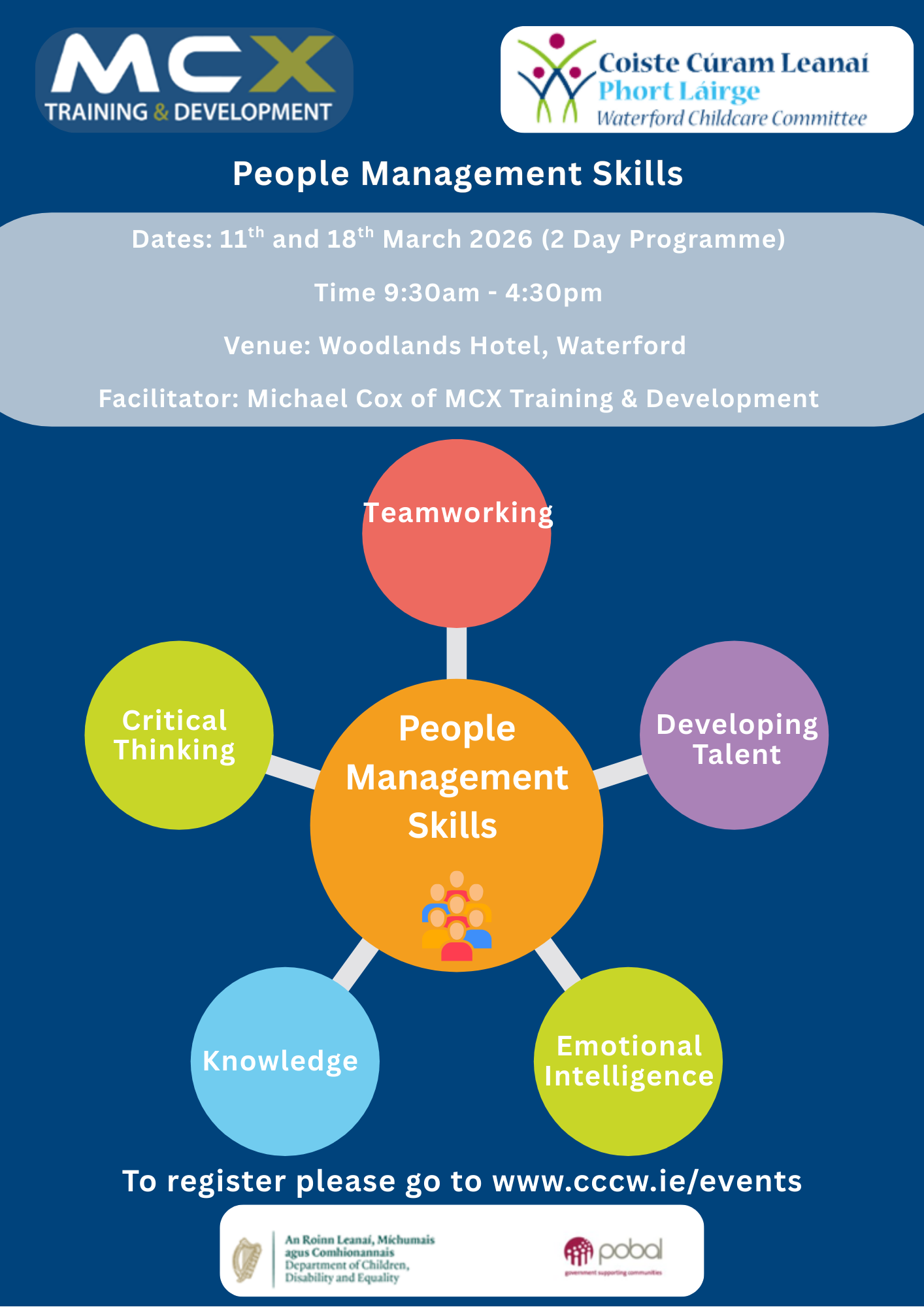 People Management Skills (2 Day Programme) March 11, 2026 9:30 am Woodlands Hotel, Waterford Free Day 1: Using emotional intelligence to unlock, harness, develop and maximise full potential of teams and individuals by identifying and working to people’s strengths More