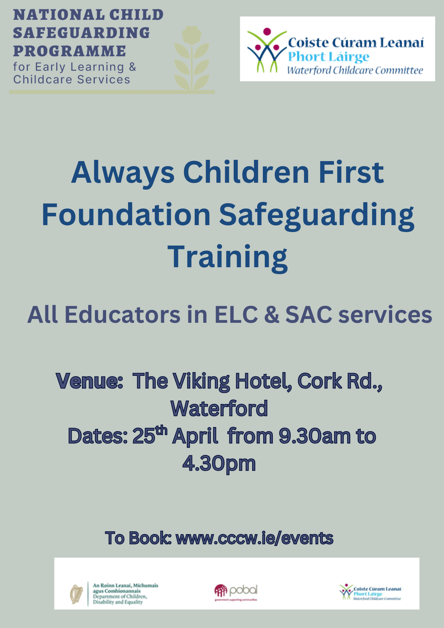 Always Children First Foundation Safeguarding Training April 25, 2026 9:30 am Viking Hotel, Cork Rd, Waterford X91 Y657 Free More